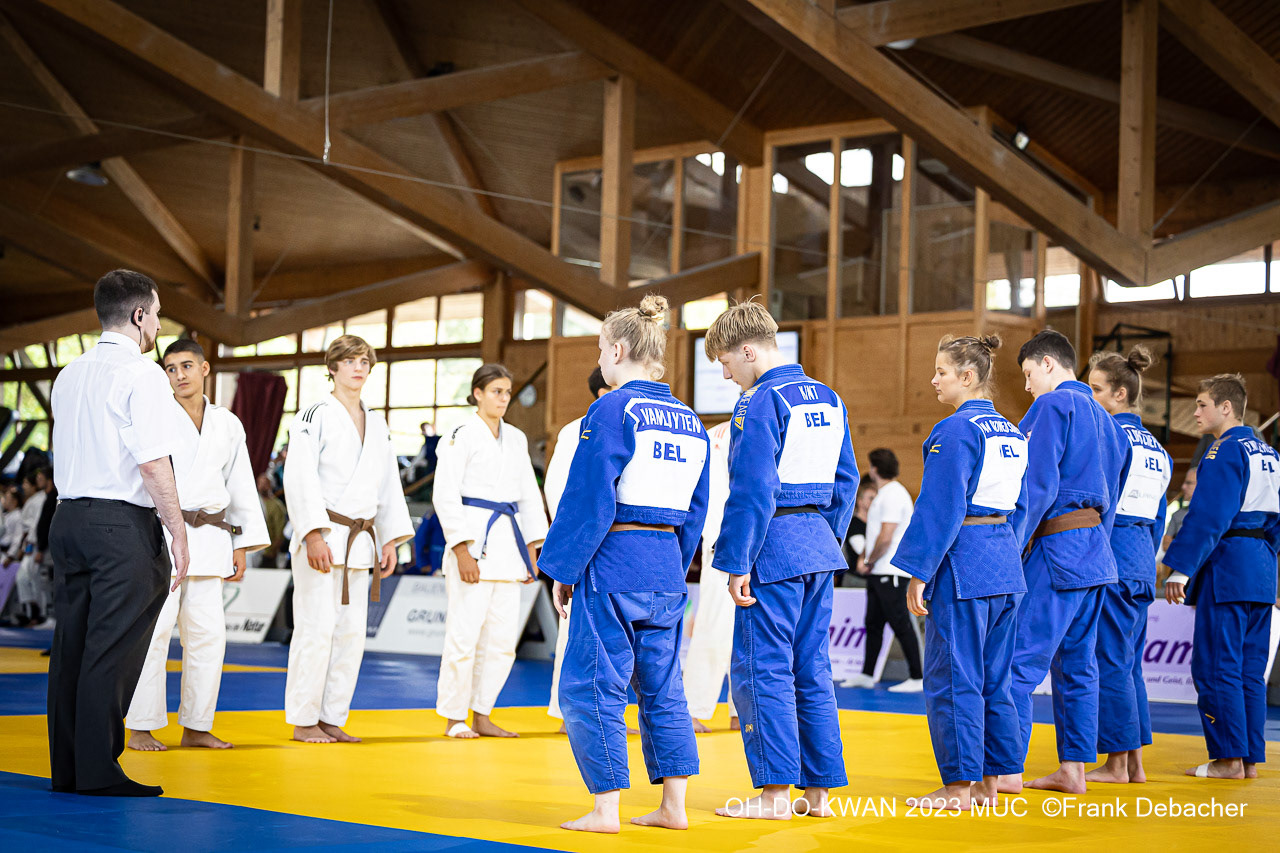 Mit insgesamt 12 Mannschaften aus 10 Nationen (!!) war das U17 Mixed Team-Event des 7. Oh-Do-Kwan Stiftungsturniers 2023 auch dieses Mal wieder hervorragend besetzt. Bereits am Freitagabend war die Halle mit den angereisten Mannschaften zum Bersten gefüllt und das vielseitige Sprachengewirr ließ das internationale Flair jeden hautnah spüren. Die teilnehmenden Mannschaften waren: Novosadski Dzudo Club (Serbien) Trudbenik Kortega (Serbien) JK Leotar (Bosnien-Herzigowina) Akademia Judo Poznan (Polen) Judo Vlaanderen (Belgien) Dukla Banska Bystrica (Slowakei) Judo Club Bezigrad (Slowenien) Auswahl Luxemburg/Frankreich Auswahl Österreich NRW Auswahl BJV Auswahl (2 Teams) Hier der Link auf die Fotogalerie von Frank Debacher bei dem wir uns ganz herzlich für die großzügige Bereitstellung seiner tollen Bilder bedanken!